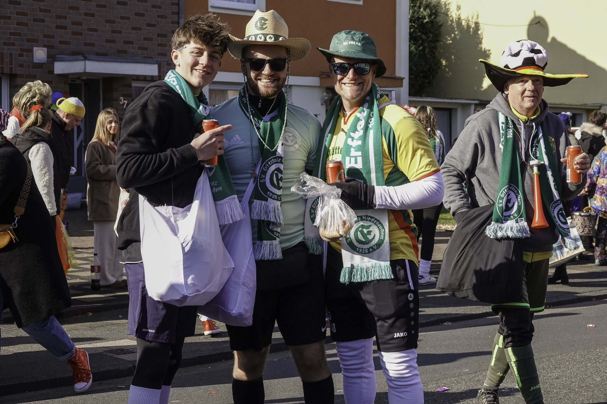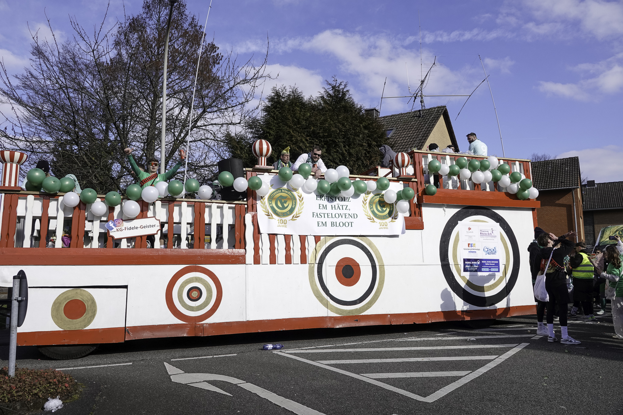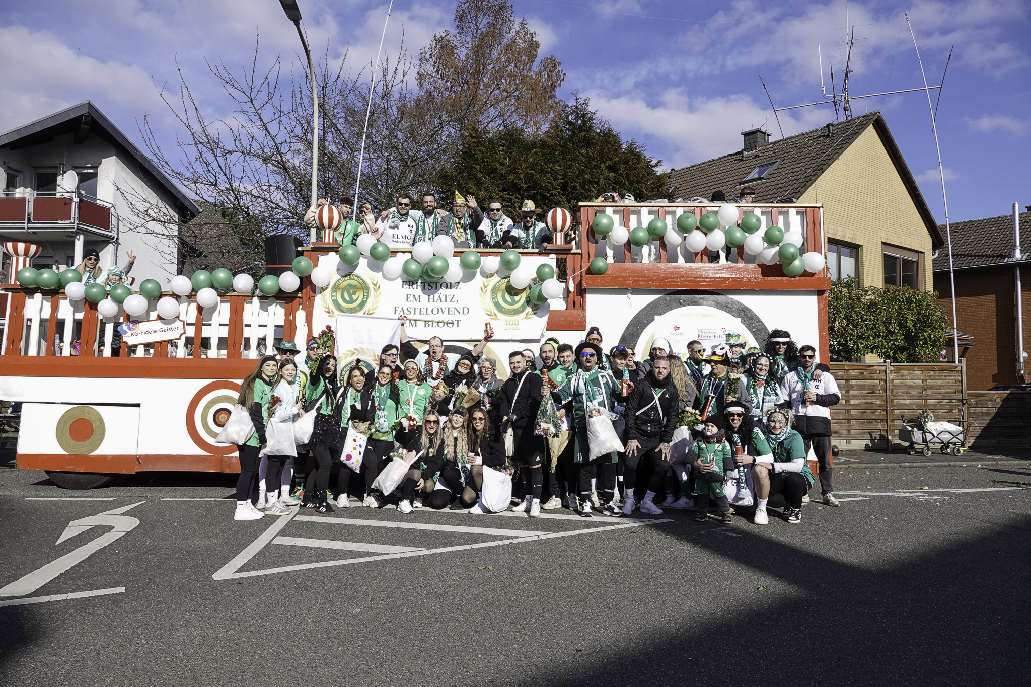 Wir blicken auf einen wunderschönen Umzug am Karnevalssonntag zurück. Rund 550 bunt geschmückte Karnevalisten starteten bei strahlendem Sonnenschein pünktlich um 13:00 Uhr unserem Umzug. Während sich der Zug durch die Straßen von Niederaußem schlängelte, konnten nicht nur die Zuschauer am Straßenrand, sondern auch unsere Zugteilnehmer zahlreiche liebevoll gestaltete Kostüme bestaunen.